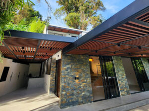 La casa campestre de Dapa fue intervenida con una remodelación completa, pensada para transformar un espacio tradicional en un lugar funcional, estético y en conexión con la naturaleza. El proyecto incluyó el diseño y fabricación de pérgolas metálicas a medida, integradas al paisaje con líneas limpias y acabados de alta calidad. También se construyó una chimenea en piedra natural que se convirtió en el eje central de la zona social, aportando calidez y carácter al ambiente. La cocina fue rediseñada desde cero, con mobiliario empotrado fabricado en madera, distribución eficiente, materiales duraderos y un estilo contemporáneo.